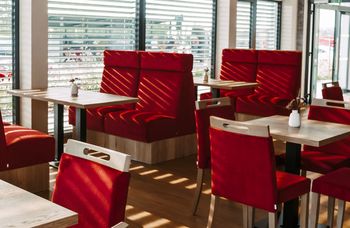 Čalouněné lavice do restaurace OLBIA jsou navrženy pro použití v profesionální gastronomii a jejich modularita a užitné hodnoty (design, konstrukční pevnost, sedací komfort a cenová relace) garantují spokojenost a bezproblémové užívání.