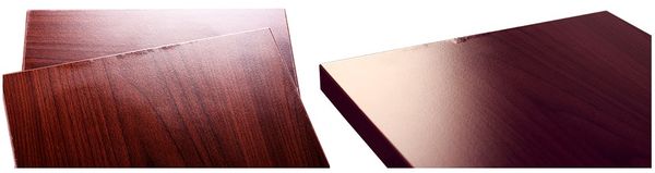 Desky s laminovaným povrchem a hranou ABS. Spojení hrany a plátu není voděodolné ani vodoodpudivé. Nevystavujte nadměrně tento spoj působení vlhkosti ani vodě (vlhké ubrusy, zbytková vlhkost při údržbě na povrchu desky, atp.). Může dojít k trvalému poškození dřevěného jádra (nabobtnání). Toto není důvodem k reklamaci.